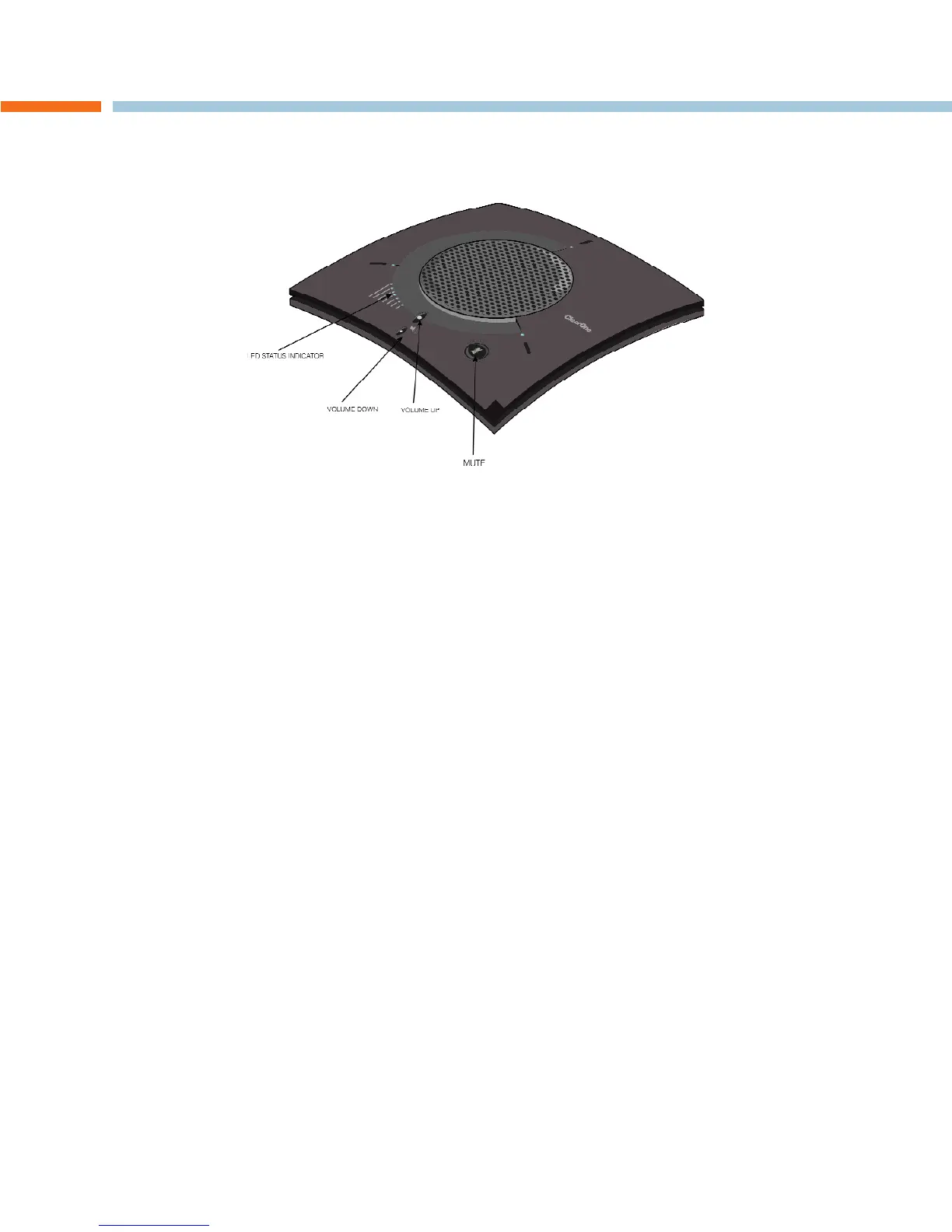 breakout box. The three status indicator LEDs above each microphone are blue when the unit is operational and change