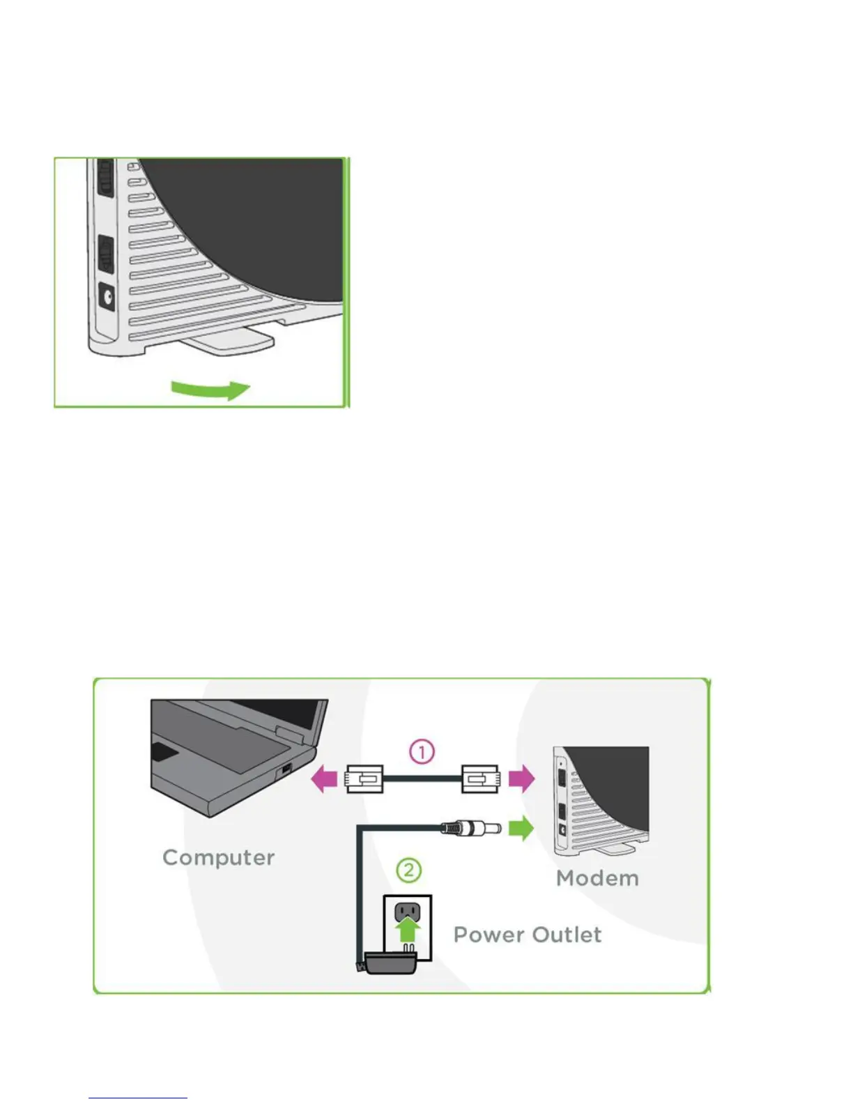 2) Plug one end of the Power Adapter into the AC Power Port on the Modem and plug the other end