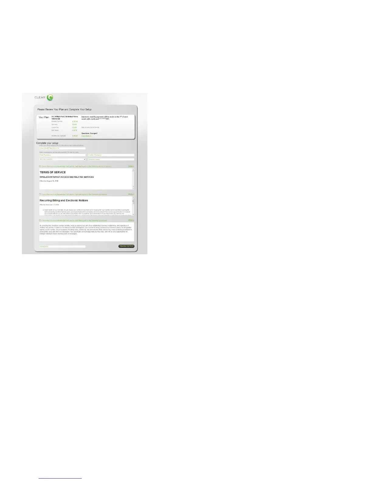 rate plan information, complete your CLEAR online account, and read / accept the CLEAR Terms of