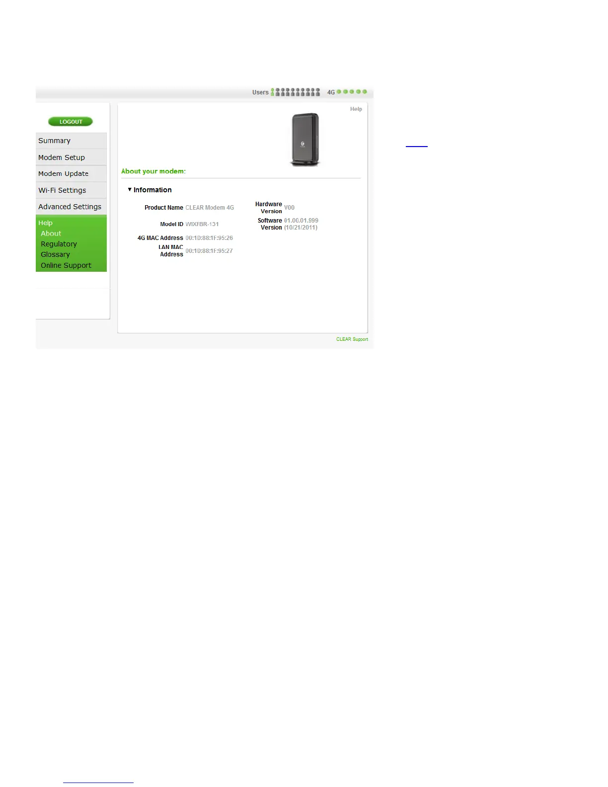 • 4G MAC Address: Displays the 4G MAC address of the CLEAR Hub Express.