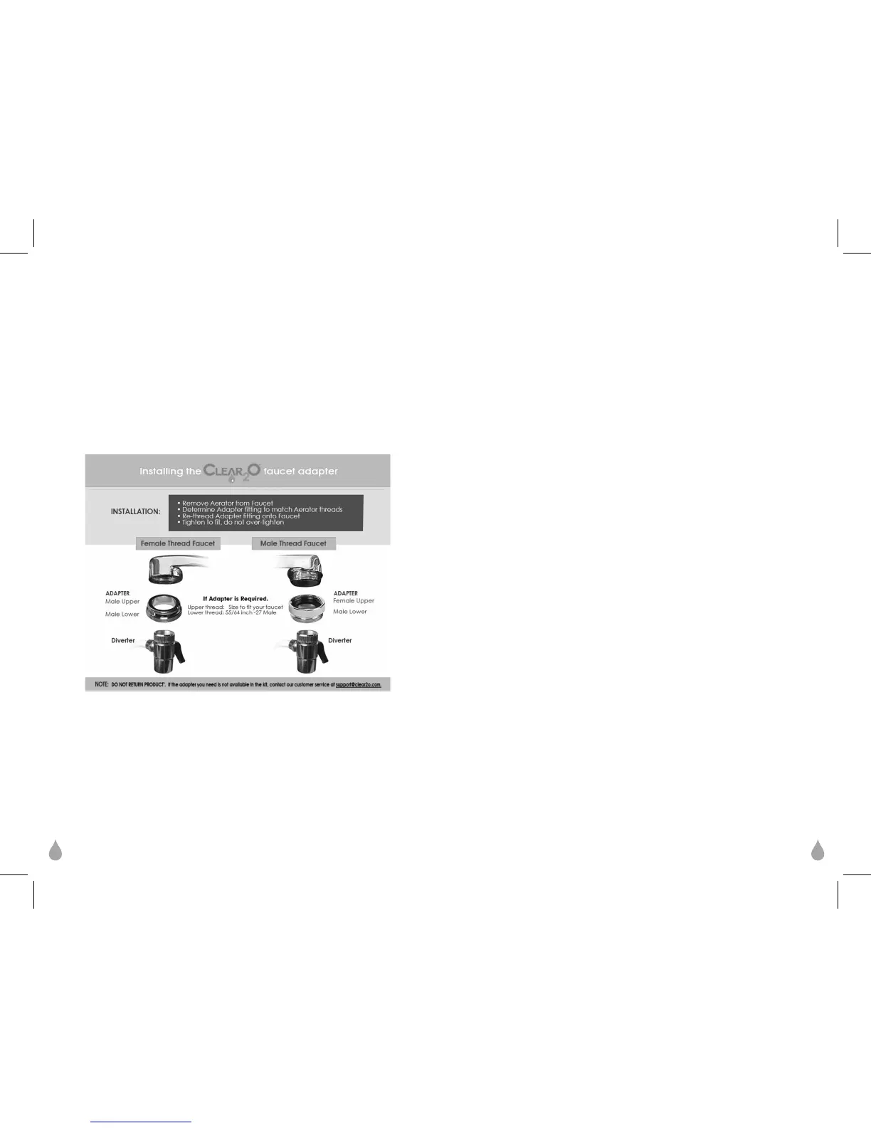www.support@clear2o.com. for additional adapter sizes. Please measure your faucet’s