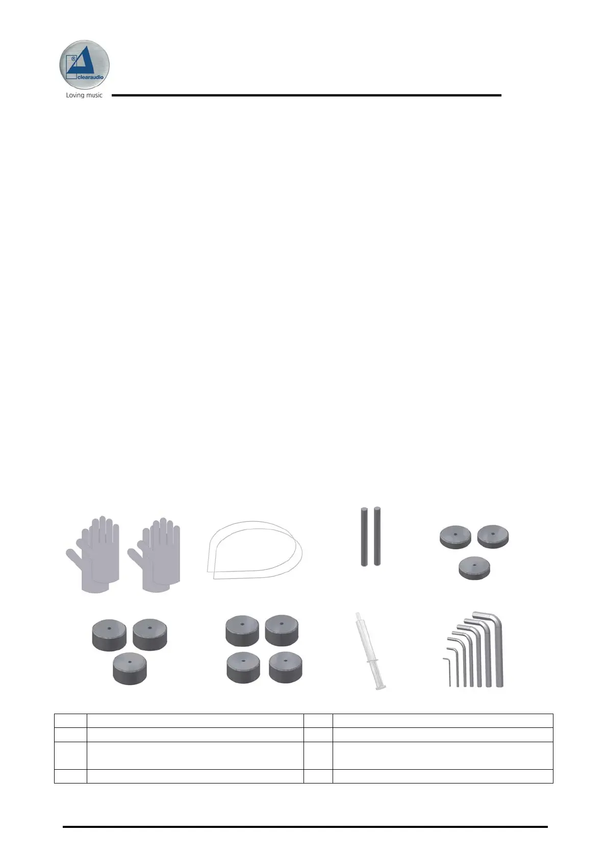 1. Two pairs of white gloves 5. Three bases as counter weights (40 mm)