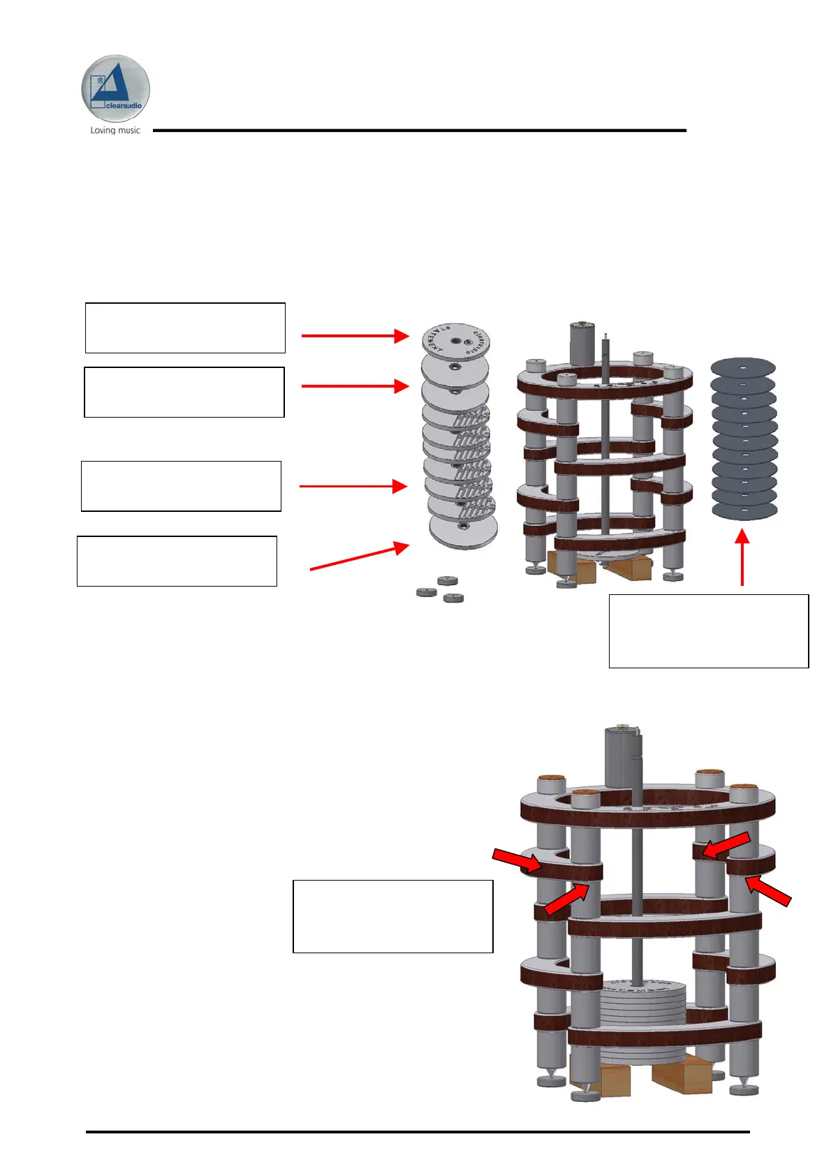 wooden blocks. Be sure to place a felt mat between each metal disc, building the pendulum with