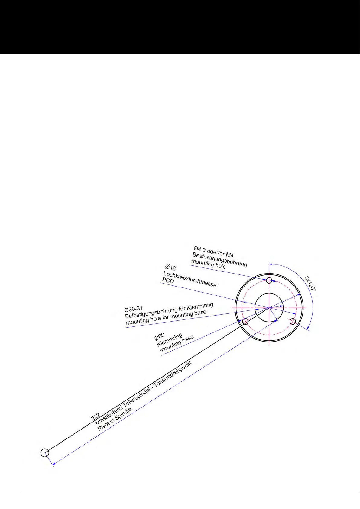Pic. 7: Drilling template for mounting the tonearm base on a other manufacturers‘ turntable