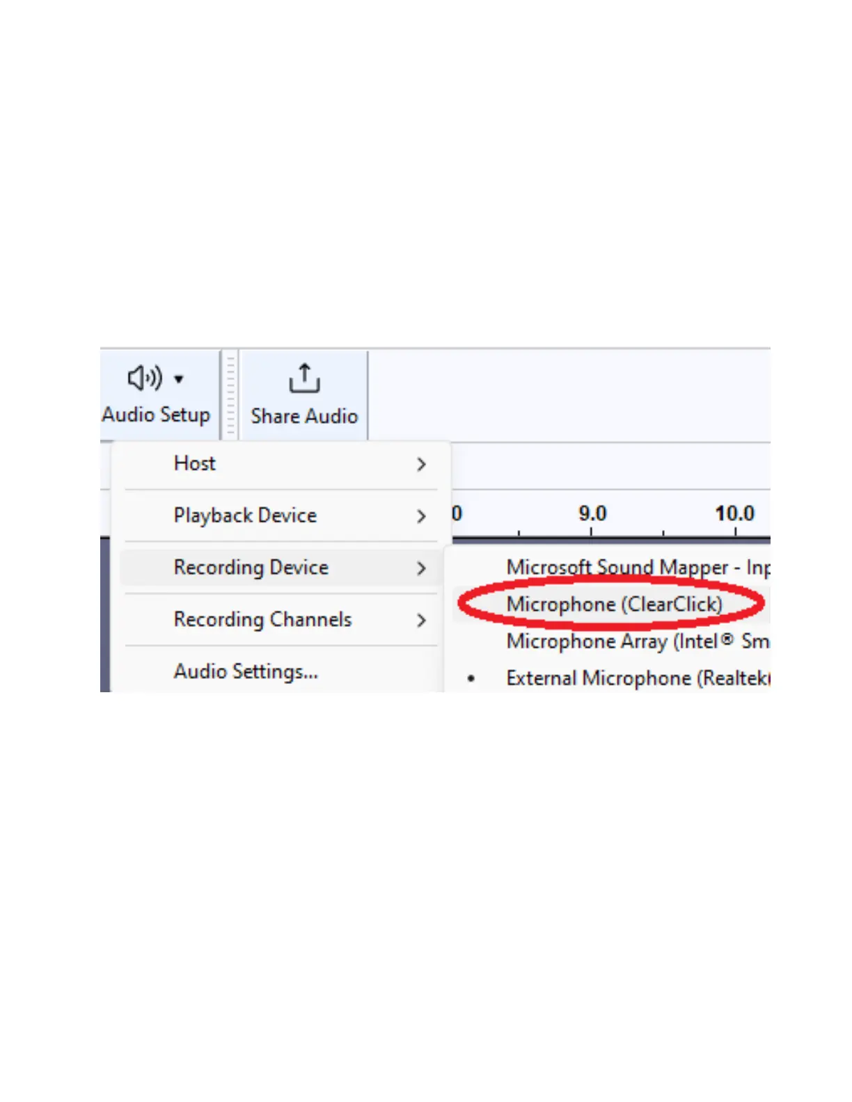 To do this, click Audio Setup → Recording
