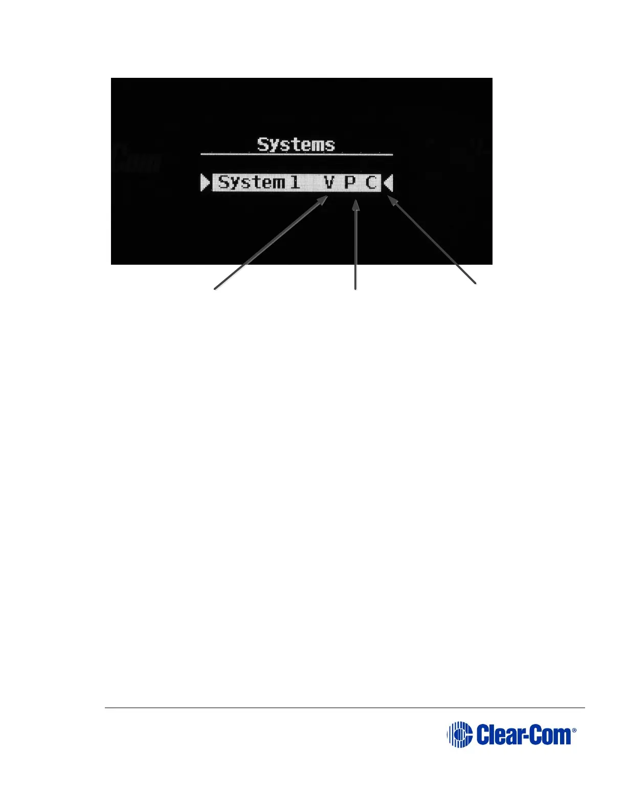 Note: If a beltpack is connected to a system ‘C’ will be visible in this