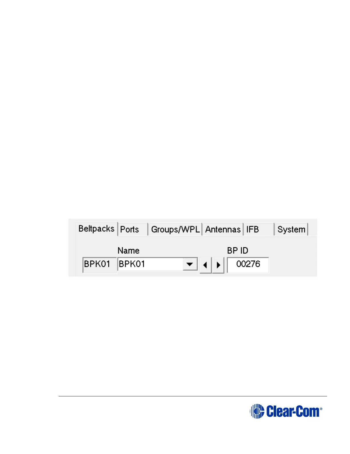 Name and Serial Num fields to step through the beltpacks.
