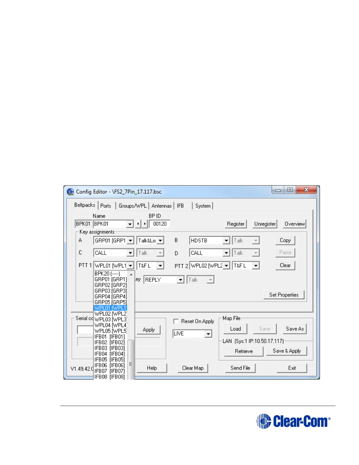 beltpack talk keys, A, B, C and D. If you are using a 7-pin headset, you can also