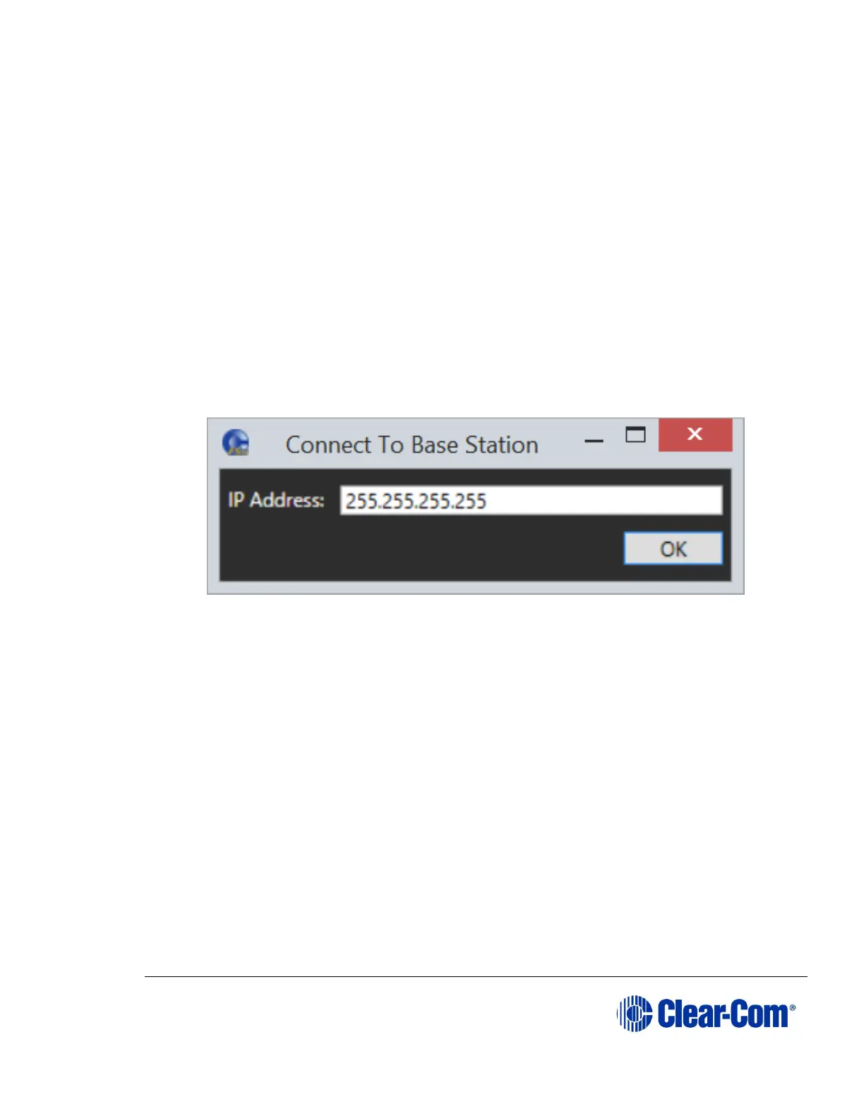 2) Enter the IP address of the Base station and click OK. After connection,
