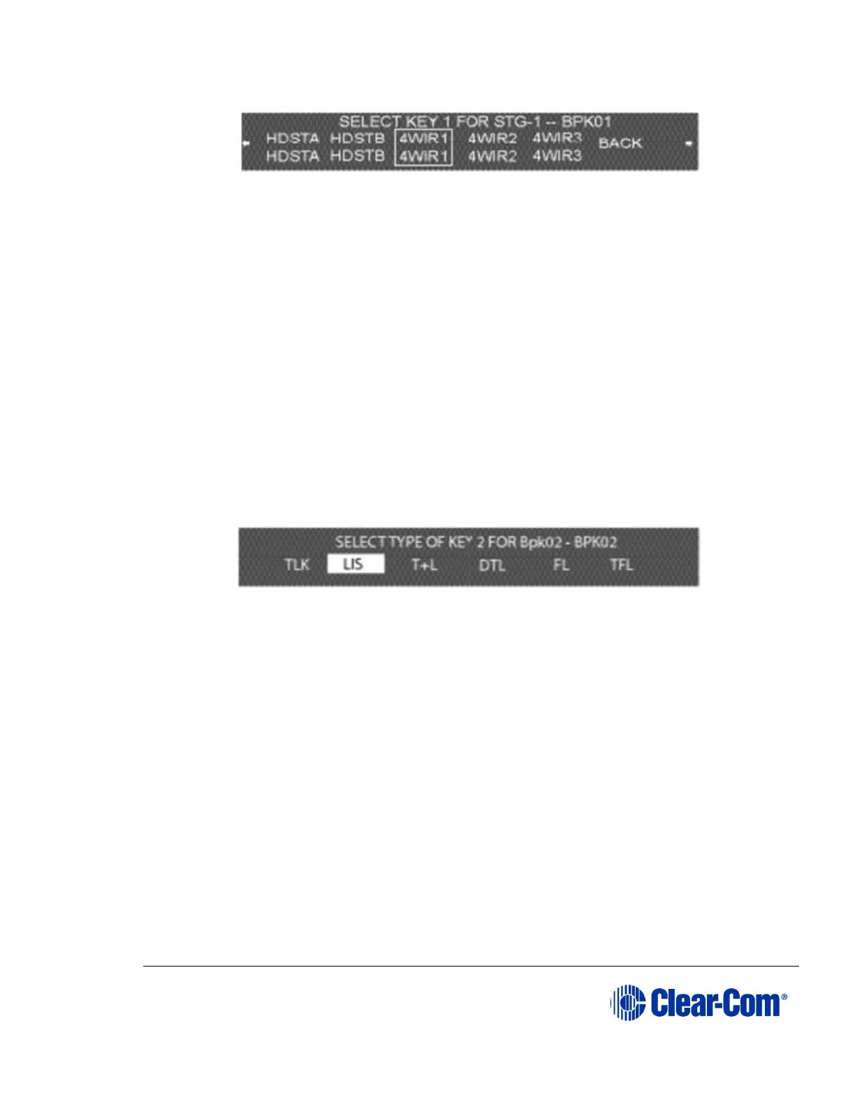 To assign keys for another beltpack continue selecting the BACK command on