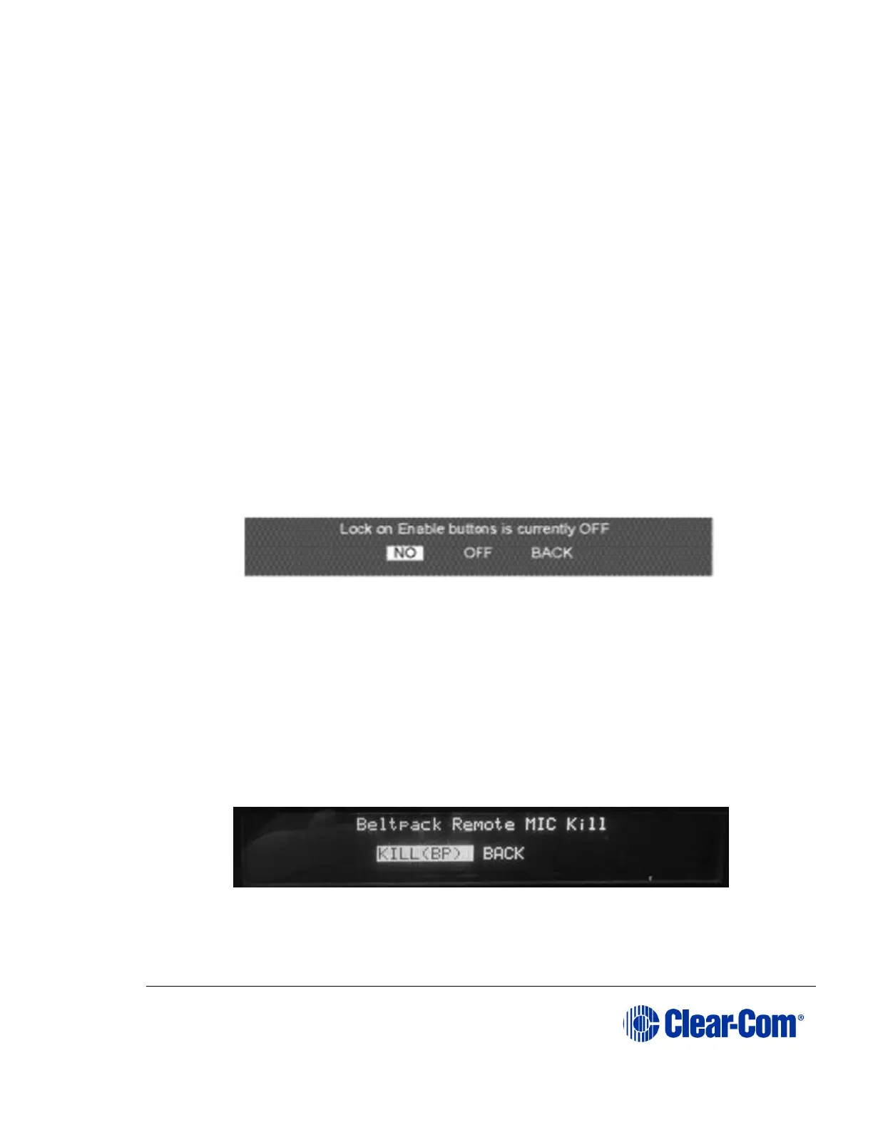 When RMK is selected the remote microphone kill menu will be displayed.