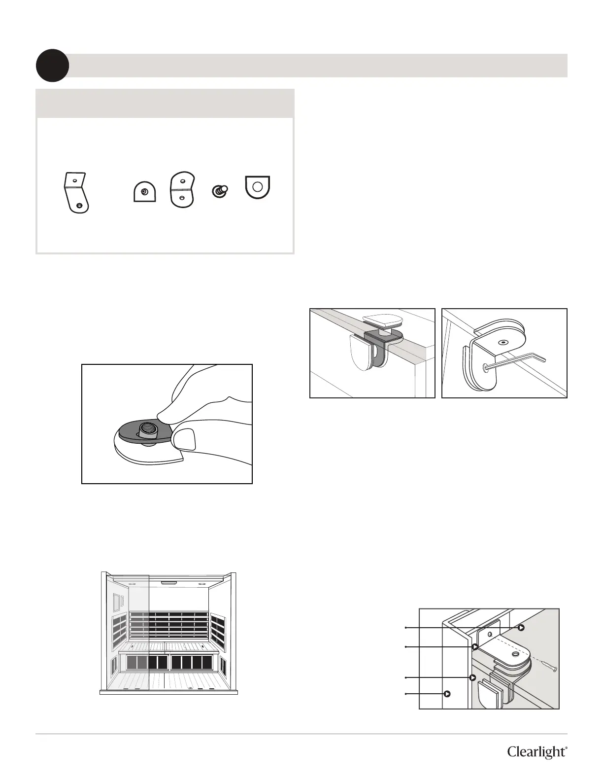 E. Finish by screwing the long glass bracket into the