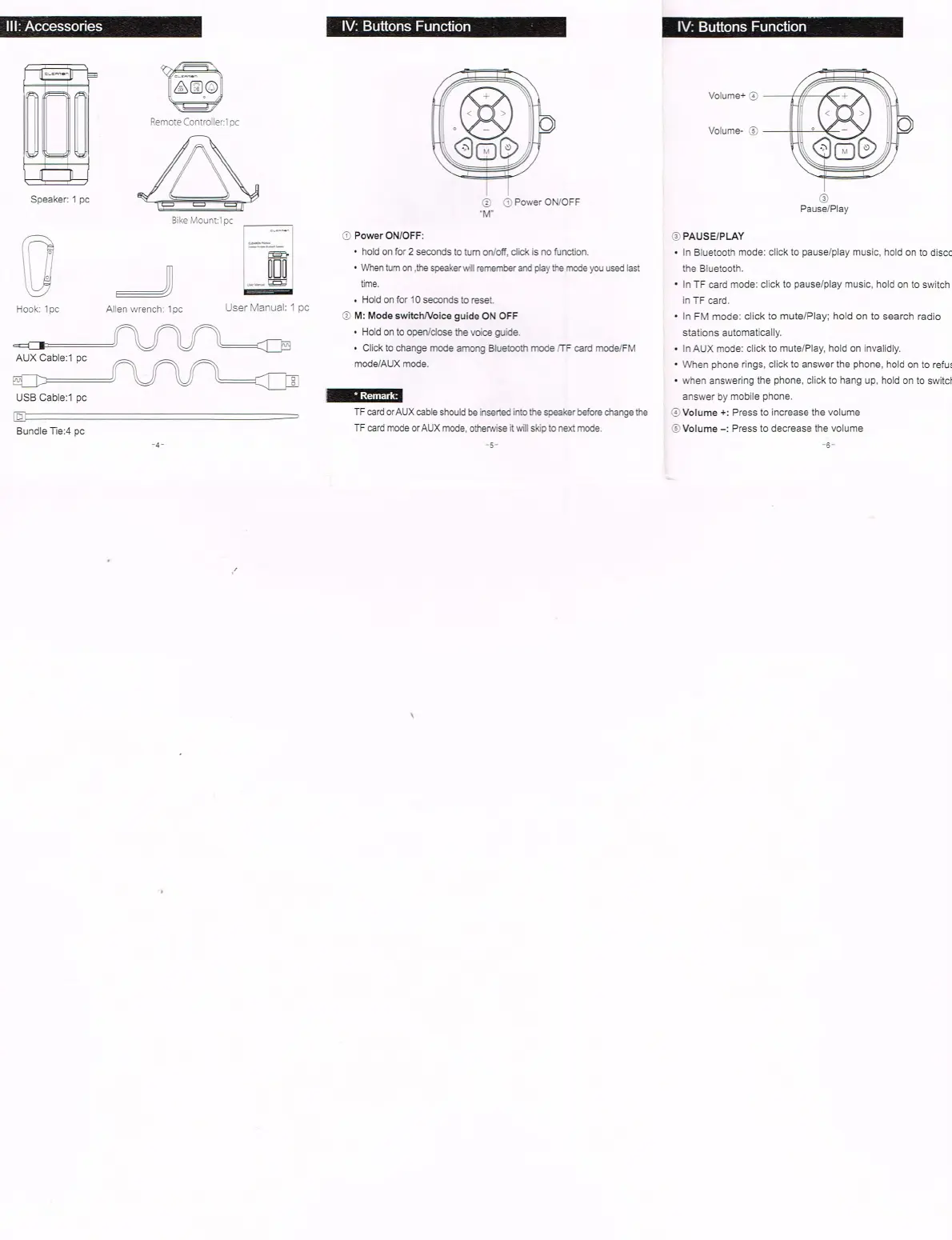 IV: Buttons Function