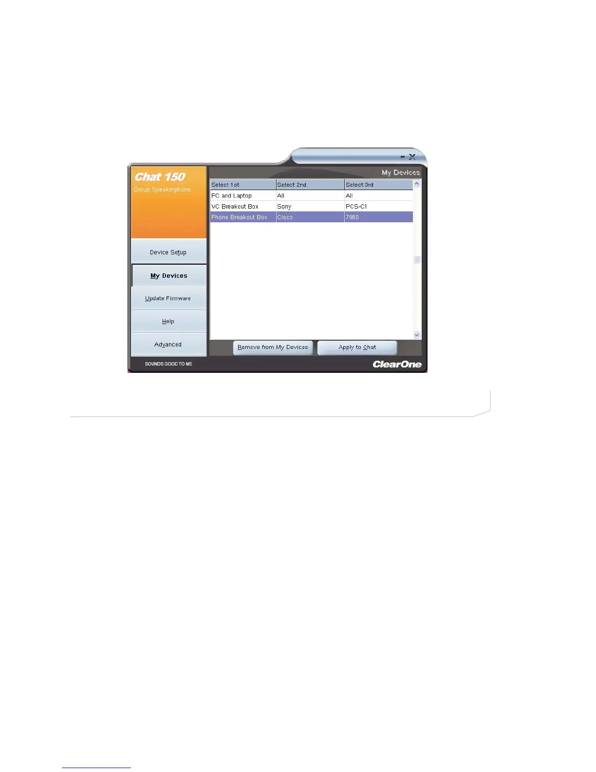 Select the device you wish to use with your Chat 150, and click the Apply to Chat button to apply the audio set-