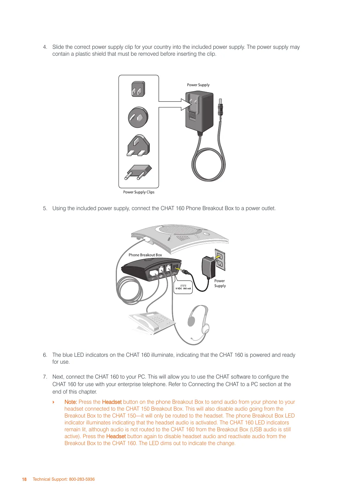 5. Using the included power supply, connect the CHAT 160 Phone Breakout Box to a power outlet.