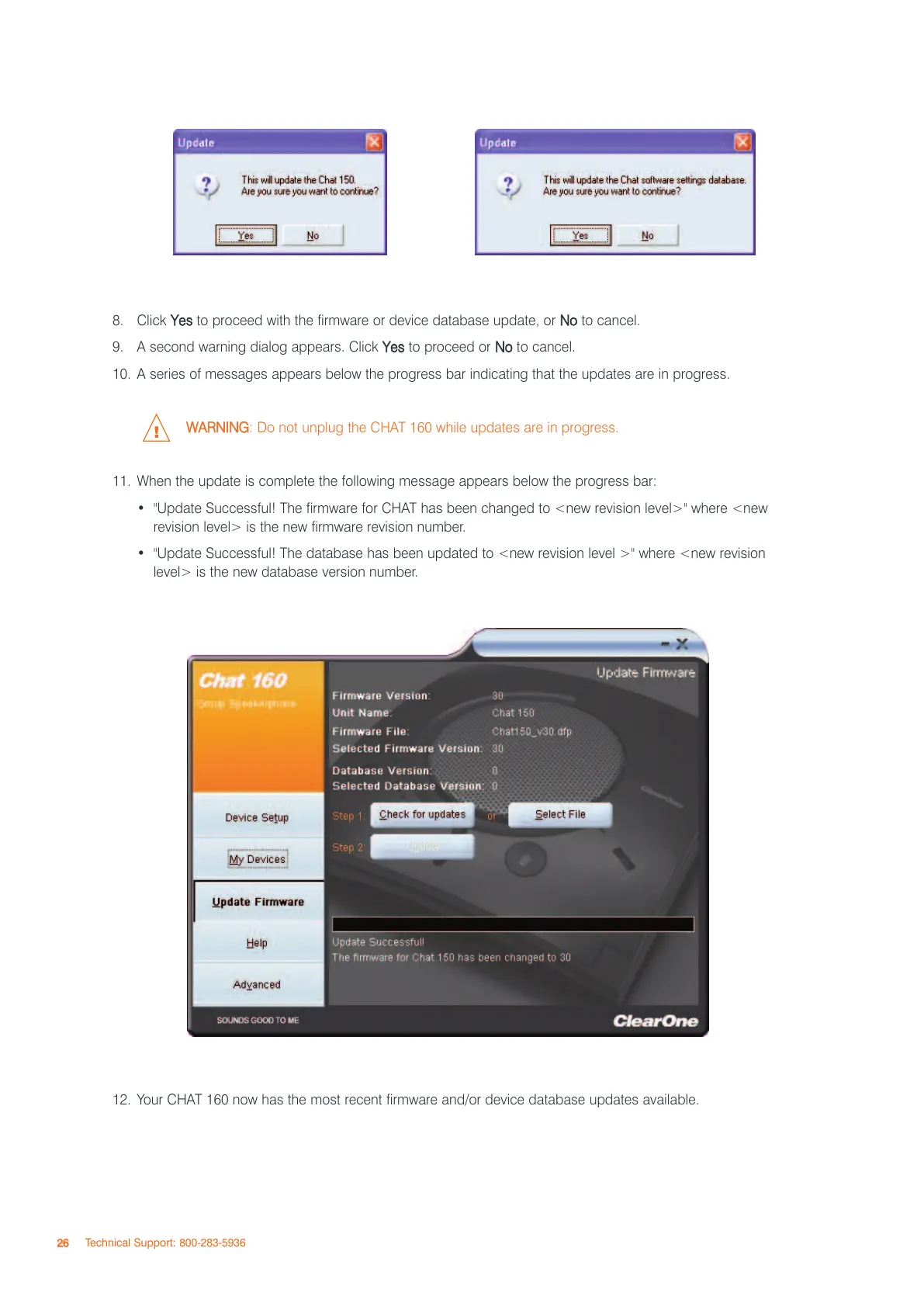 : Do not unplug the CHAT 160 while updates are in progress.