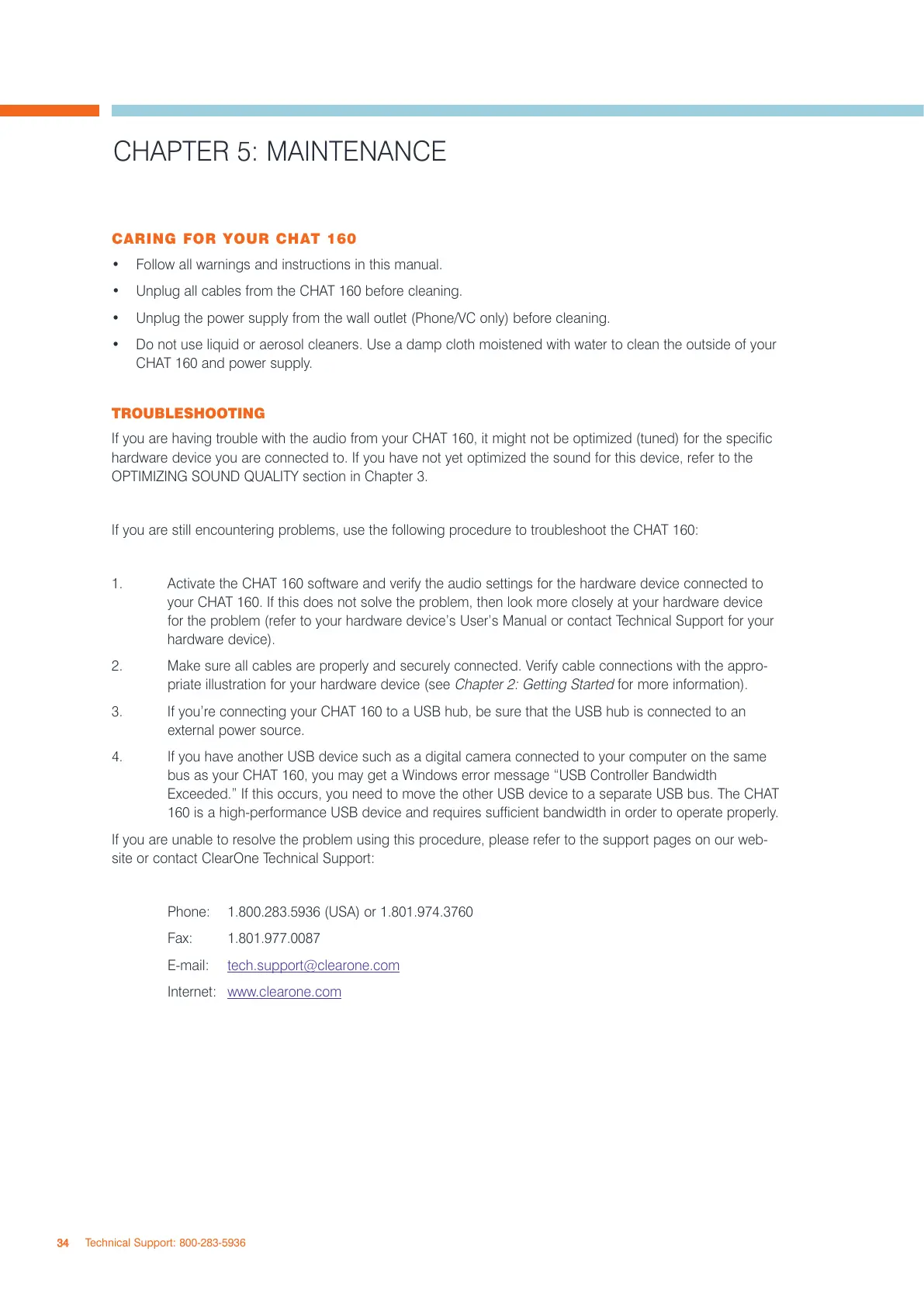 site or contact ClearOne Technical Support: