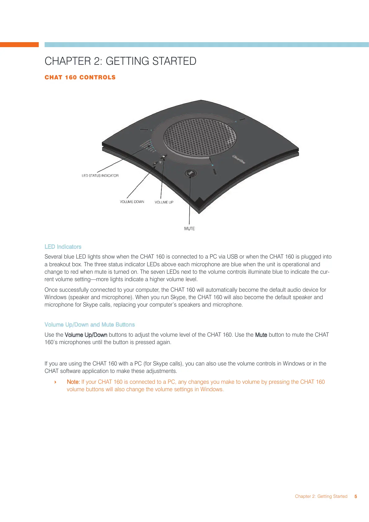 Windows (speaker and microphone). When you run Skype, the CHAT 160 will also become the default speaker and
