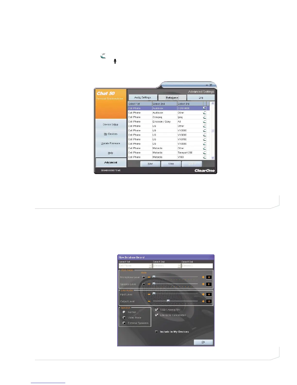 Database Record dialog appears (Figure 3.13). To view the current settings on the Chat 50, click Upload from