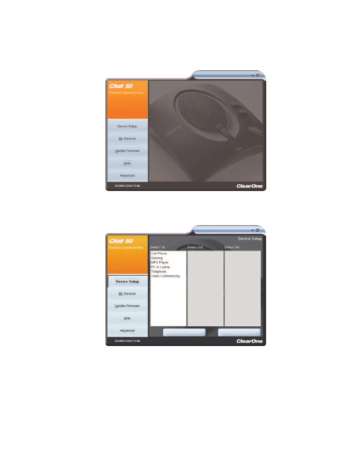 button in order to select and configure pre-defined audio settings for the devices
