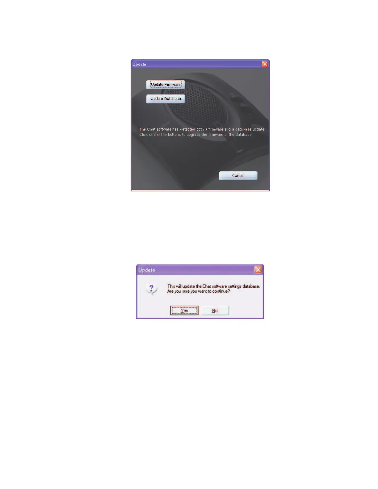 5. If you choose to update the device database, a warning dialog appears.