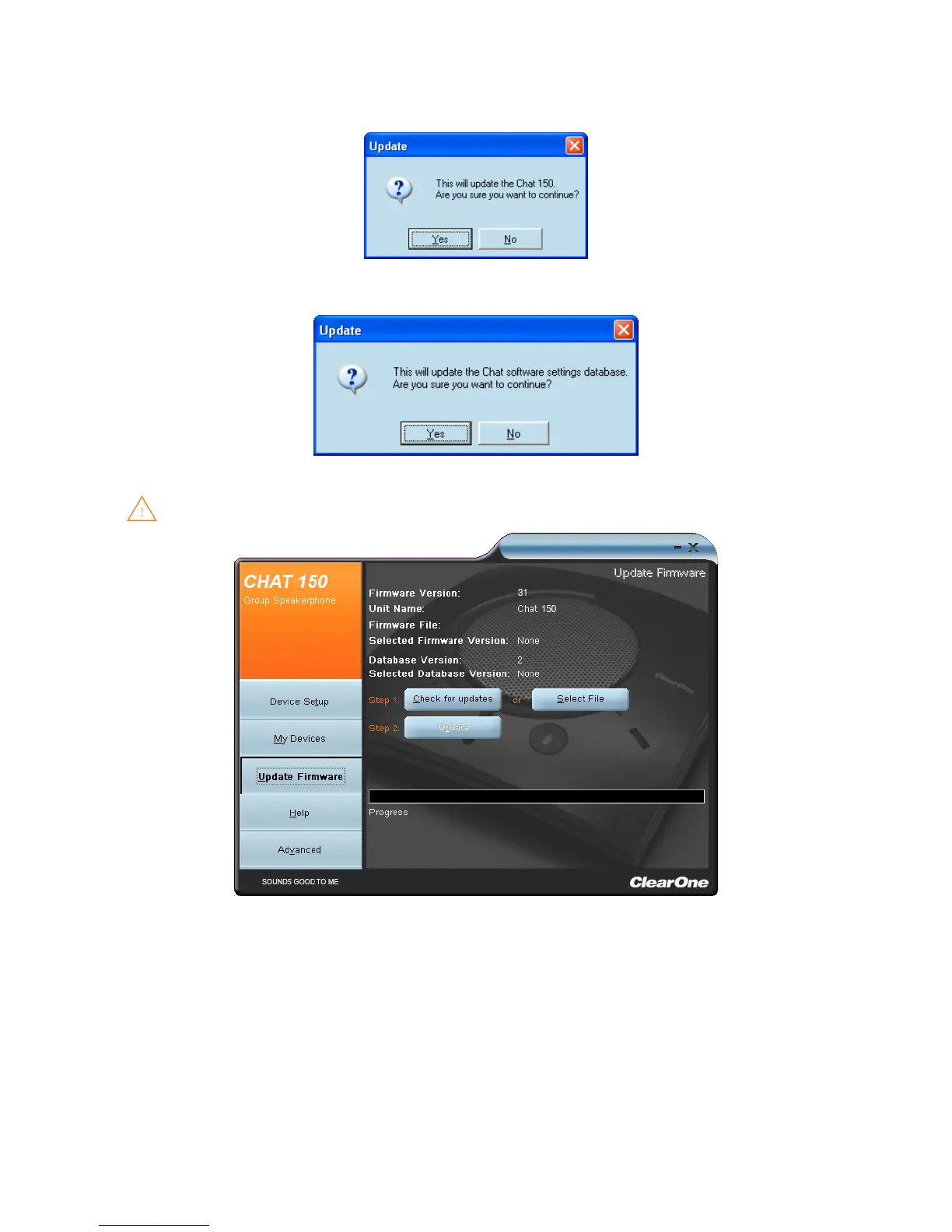 WARNING: Do not unplug the CHAT 150 while updates are in progress.