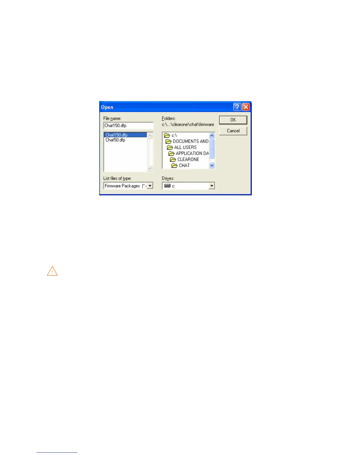 Press the 1. Select File button in the Update Firmware screen. The Open dialog window is displayed.