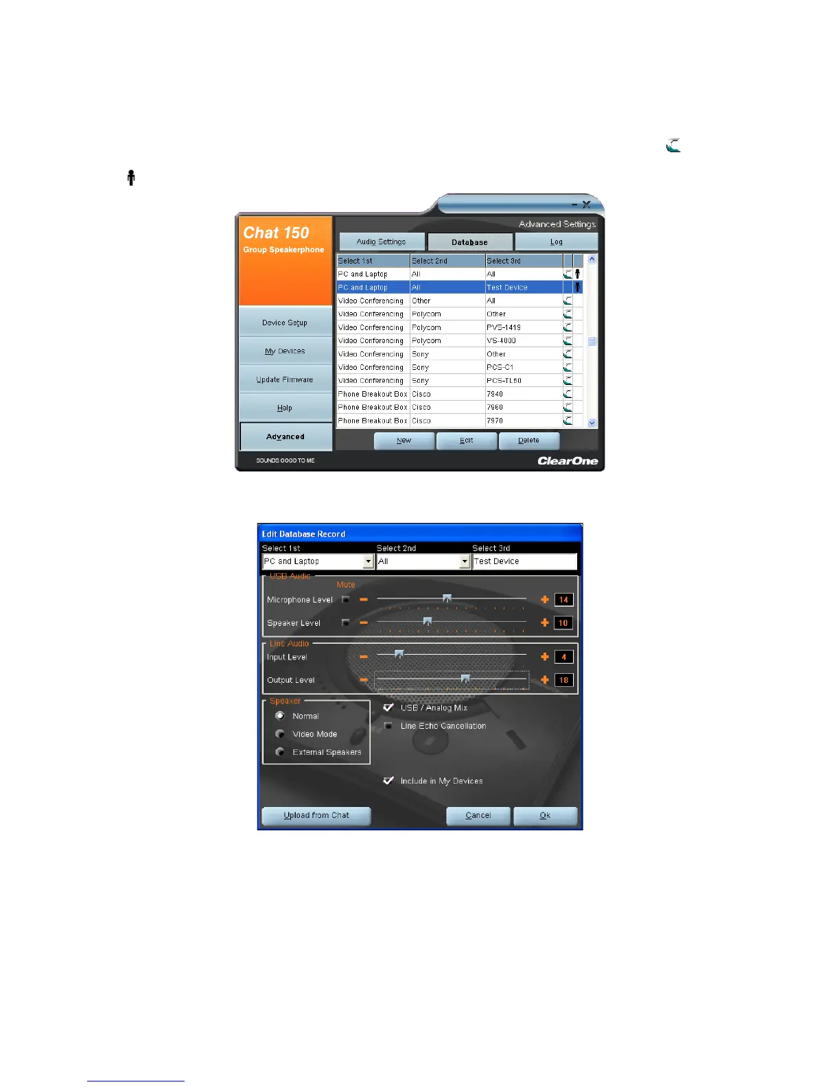 database includes all of the audio settings for the devices pre-programmed by ClearOne (identified by the icon next