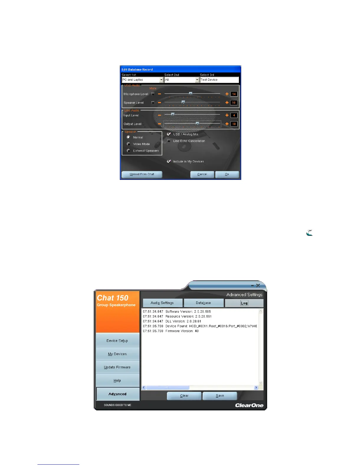 Adjust the audio settings, or click 2. Upload from CHAT to upload the CHAT 150’s current audio settings.