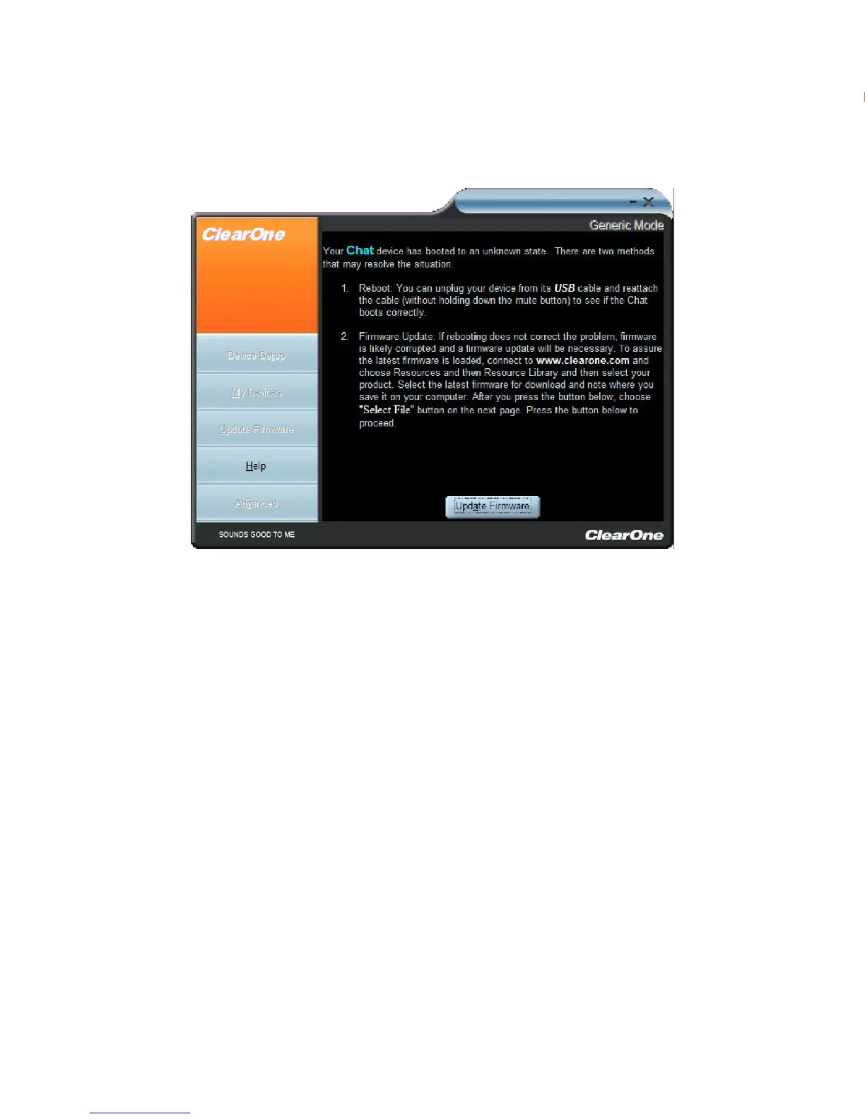 might become unstable. The CHAT 150 software will boot into a generic mode and the Generic Mode screen will be