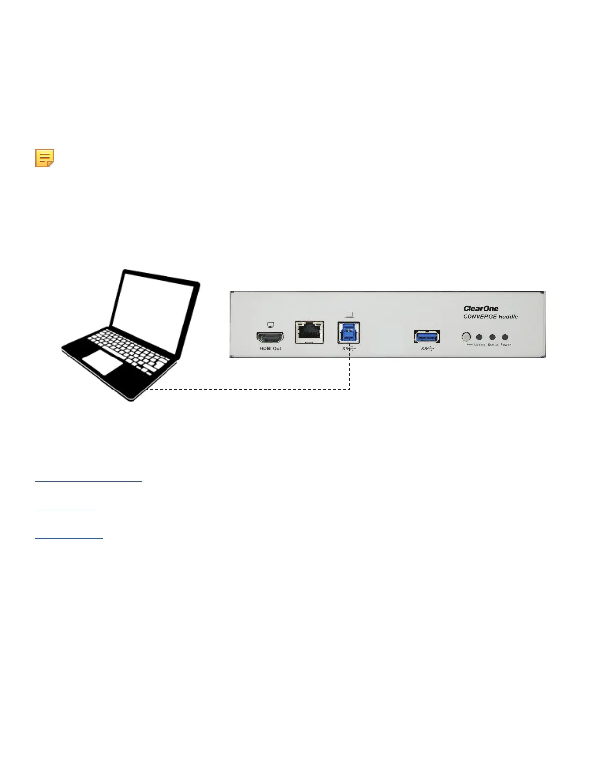 Connect your laptop to the USB 3.0 Type-B input port on the CONVERGE Huddle.