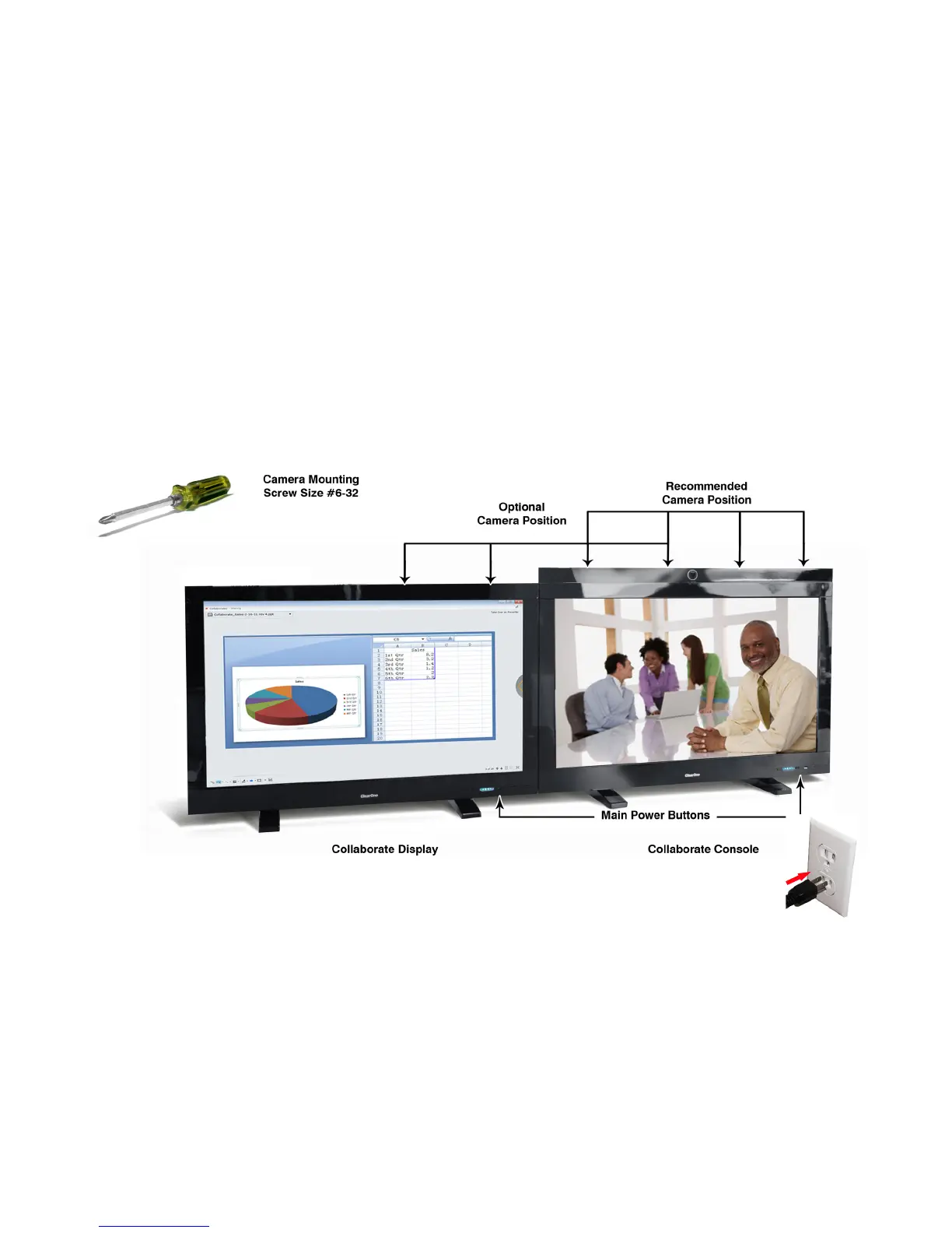 between the Primary (Conferencing) and Secondary (Data Sharing) Monitors. Mount