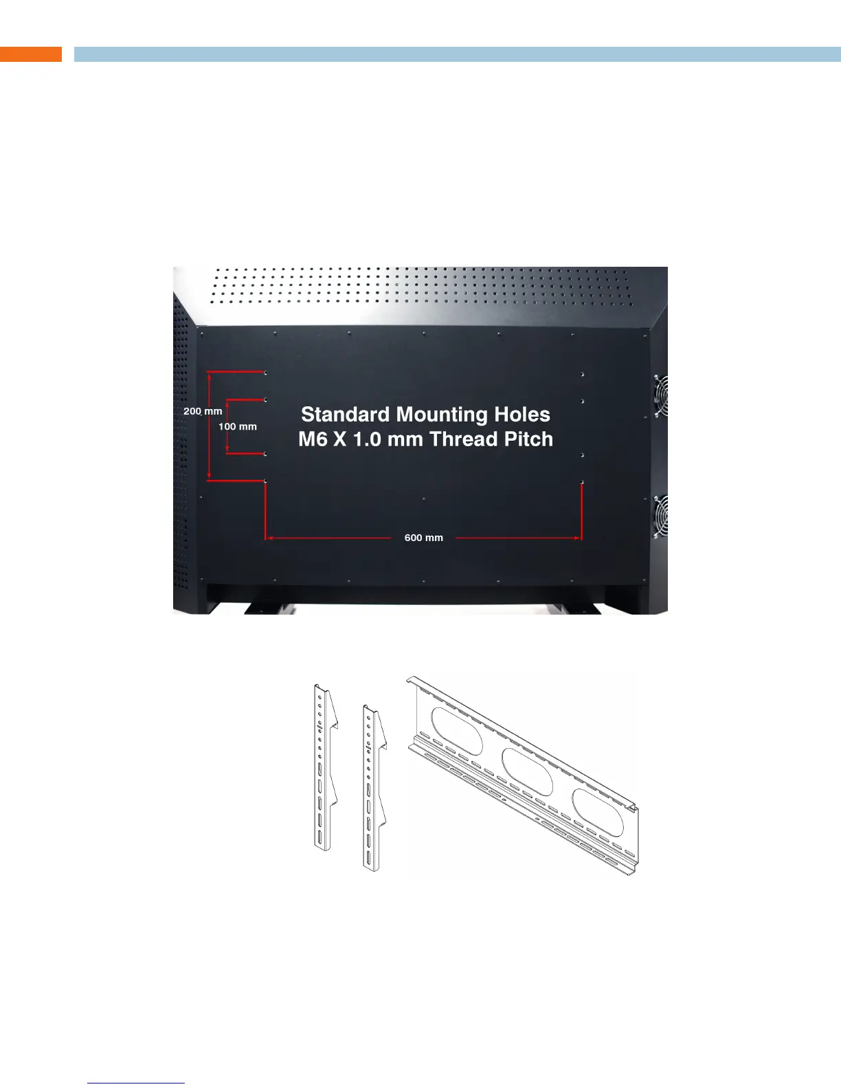 The Collaborate monitor provides standard mounting sizes (M6 600 x 200 external, M6 600 x 100