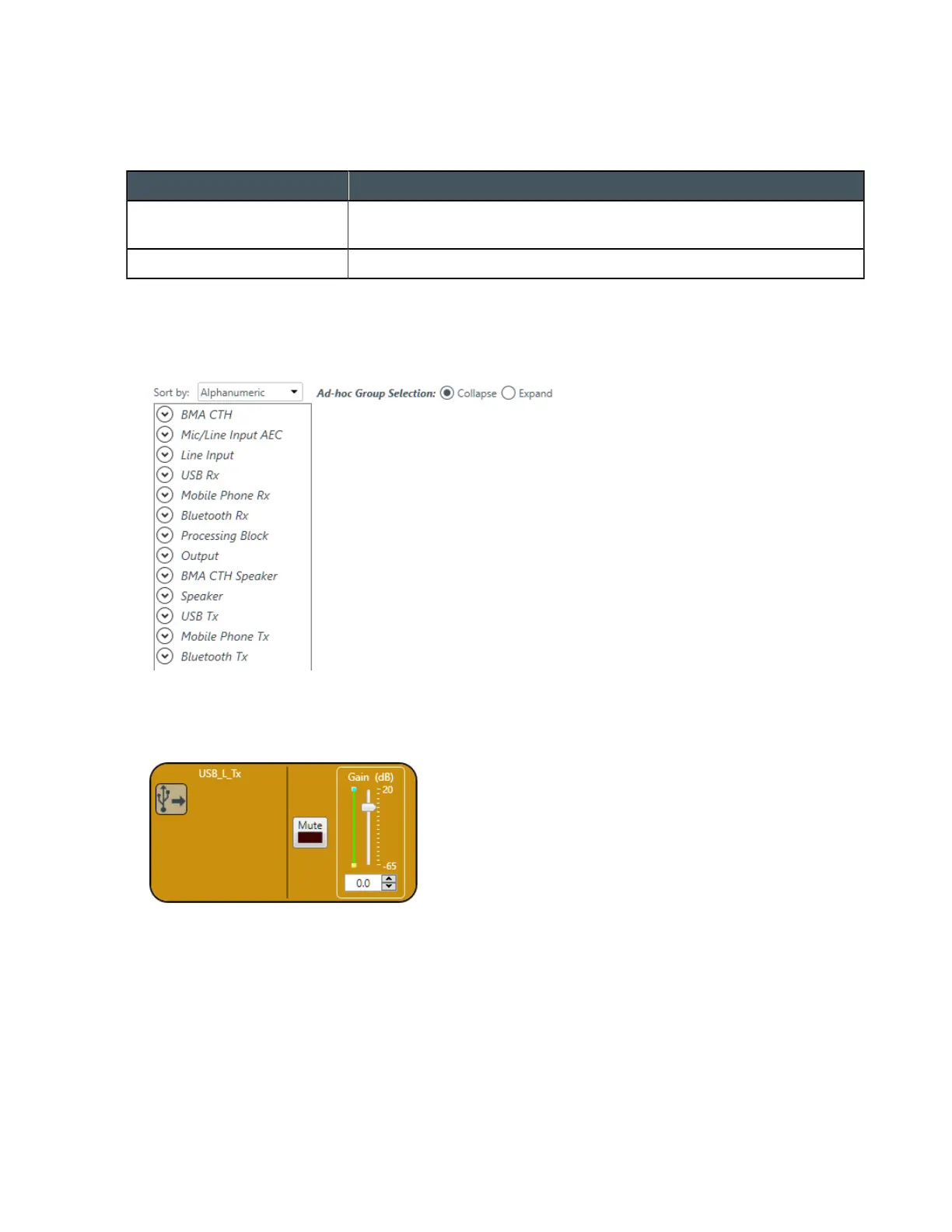 Gain Gain adjusts the input volume level for a USB input in increments of