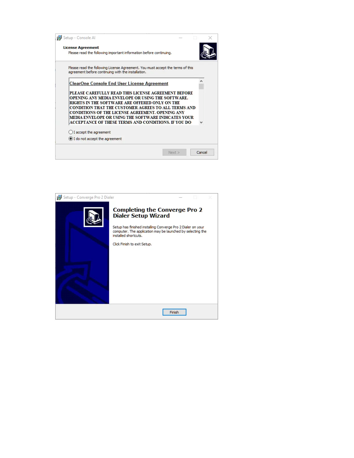 The Dialer Installation Wizard opens and completes.