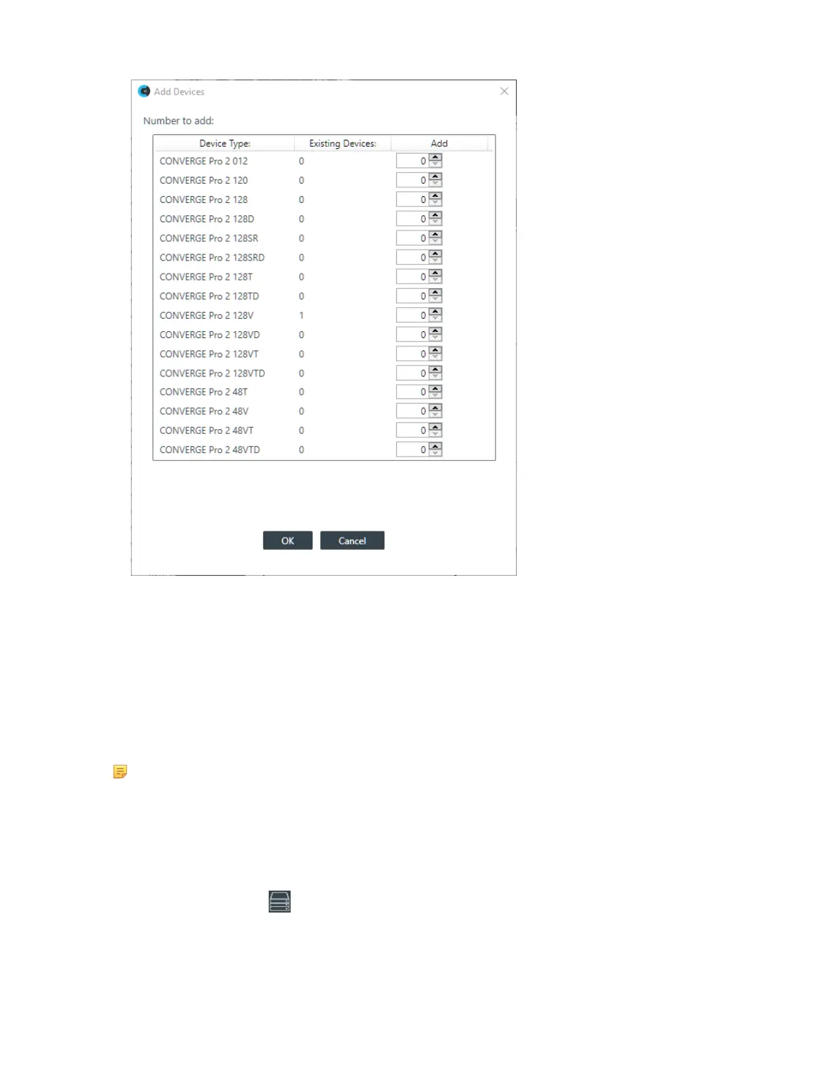 add or use the incrementer and decrementer buttons to specify how many devices of that type to add.