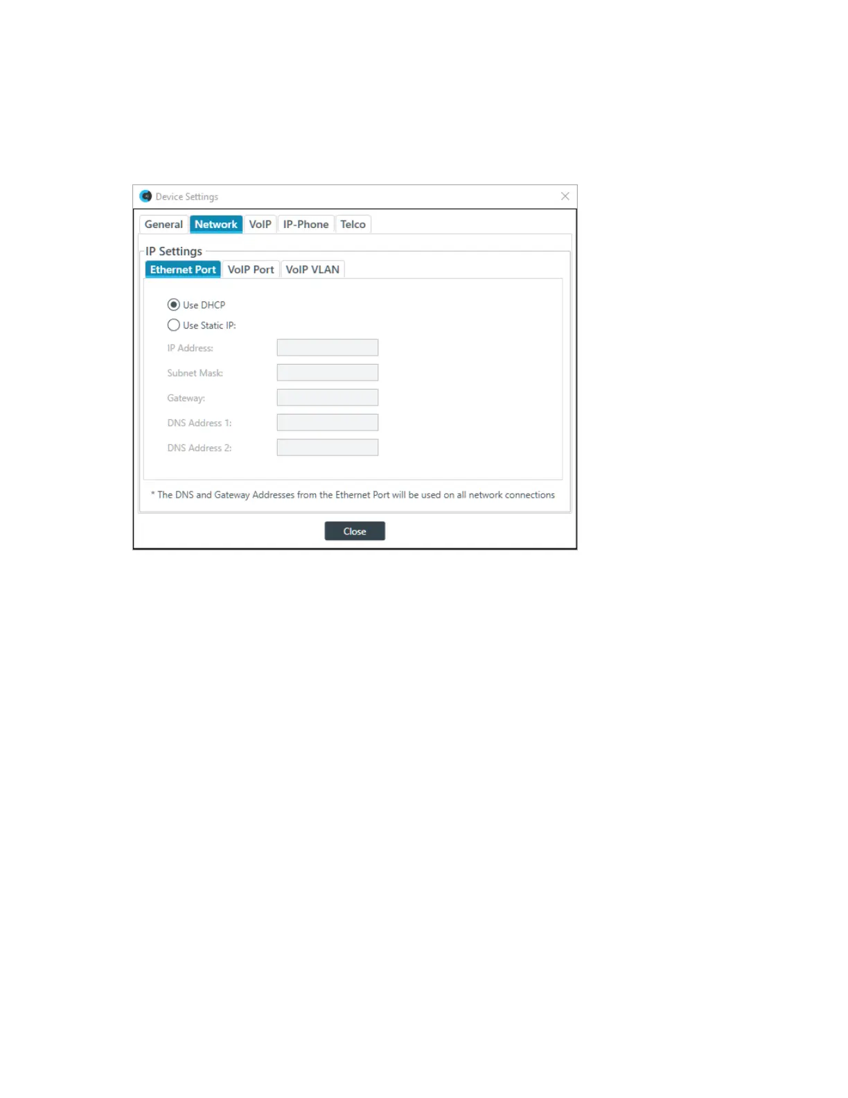These settings apply to the VoIP port on the back panel of the CP2 device, if there is one. Not all VoIP-