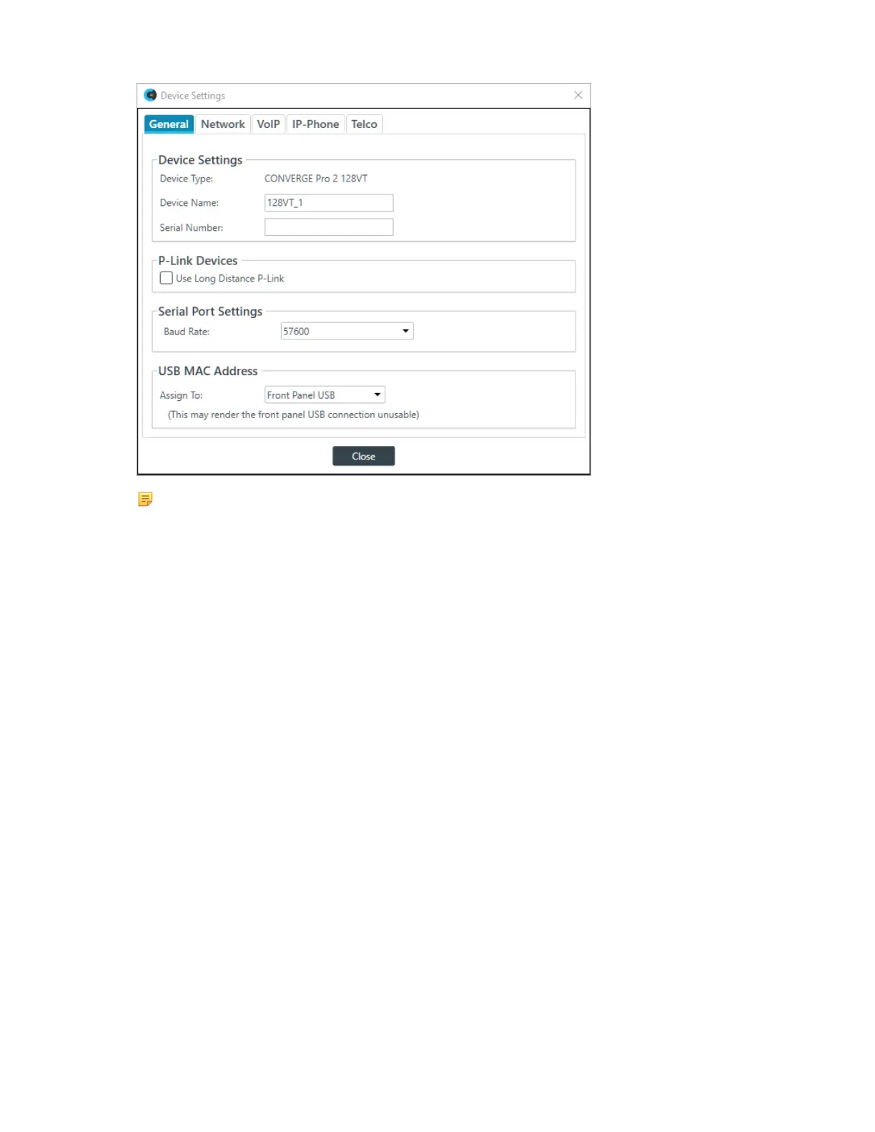 The tabs shown on this dialog box depend on the type of device. All devices have General and