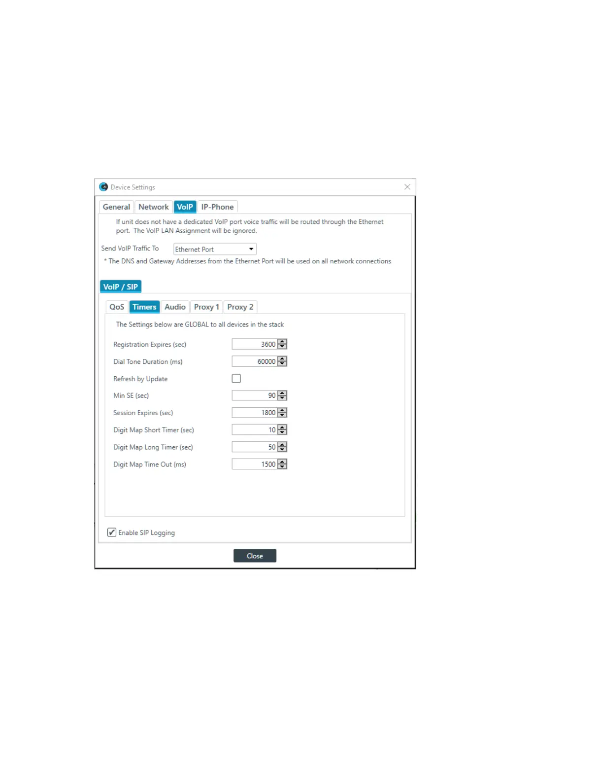 Enable SIP Logging Whether to turn on SIP logging for troubleshooting purposes.