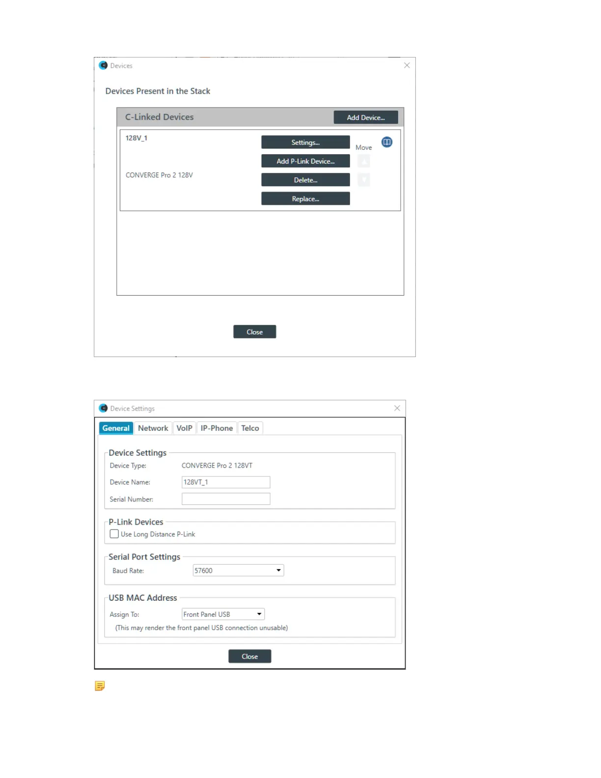 The Device Settings dialog box appears: