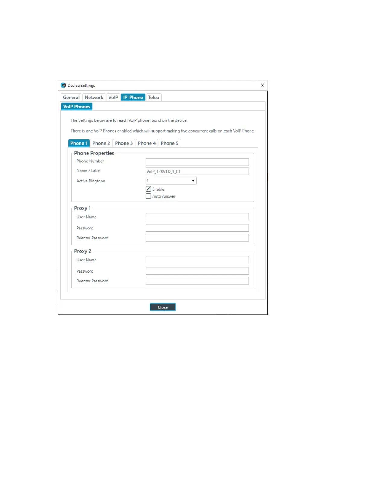 4. (Optional) Change any of the settings on the Phone 1, Phone 2, Phone 3, Phone 4, or Phone 5 tabs (as