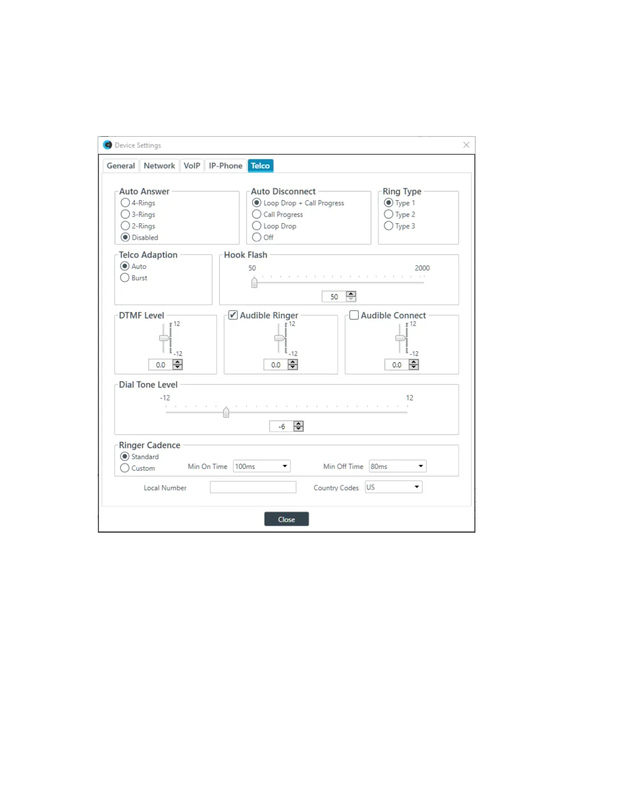 4. Change any of the Telco settings (as described in the table below).