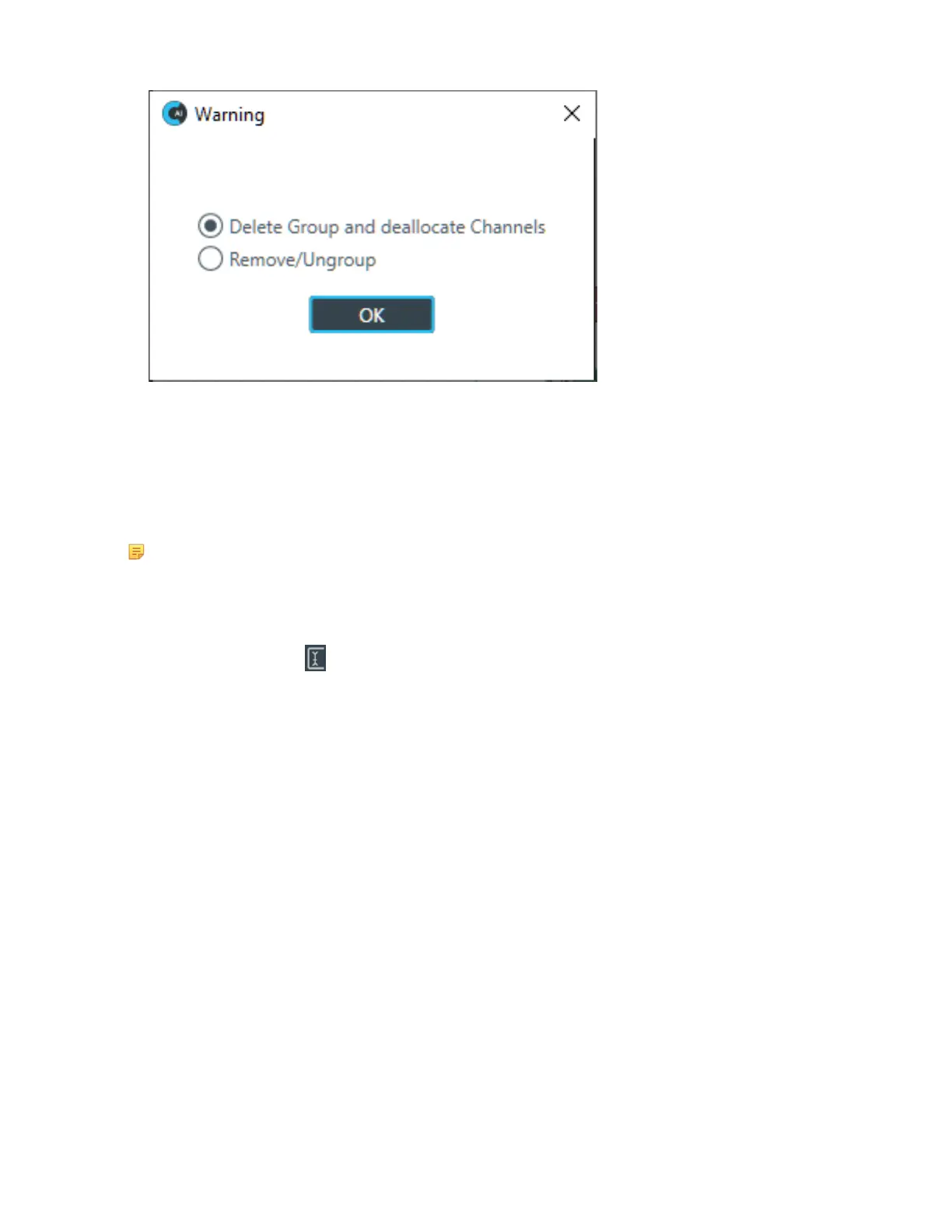 4. To remove the entire group, select Delete Group and deallocate Channels and then click OK.