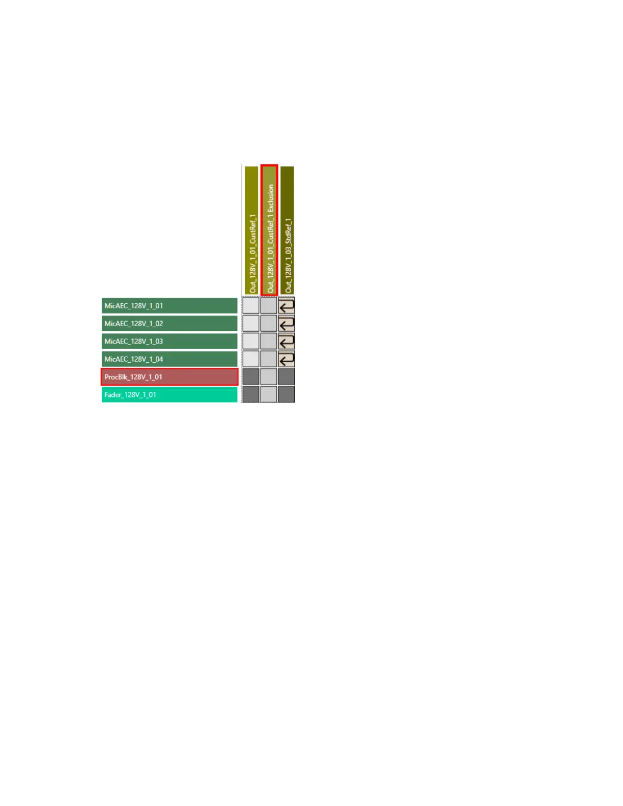 Out_128V_1_03_StdRef_1) and click any crosspoints that intersect with input channels you want to