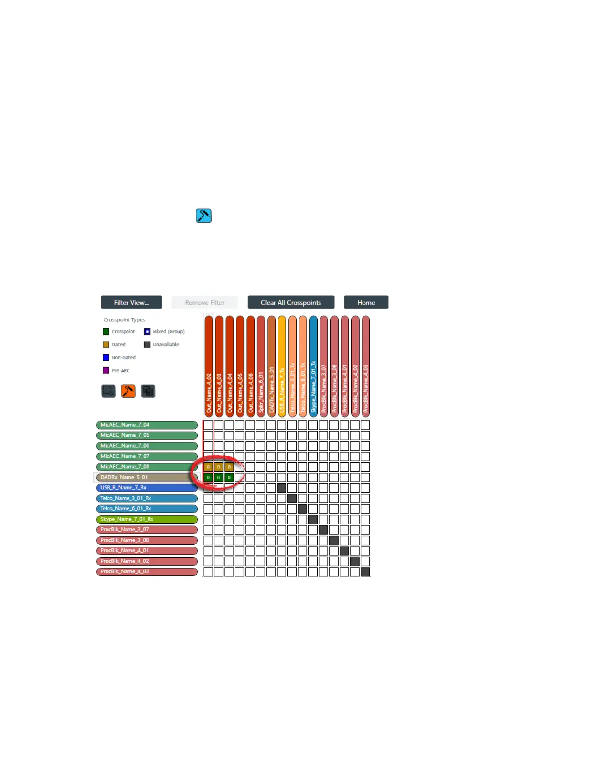 4. To change the type of all selected crosspoints, choose an option from the Crosspoint Type drop-down