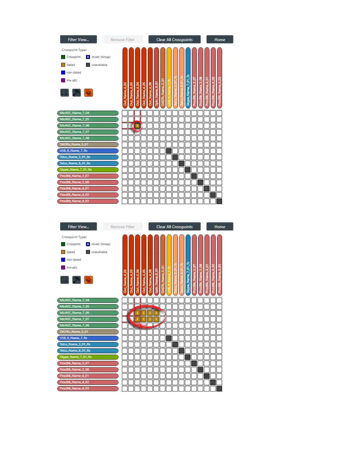 the attenuation value of 3 of the crosspoint circled in the Before image have been copied to all the