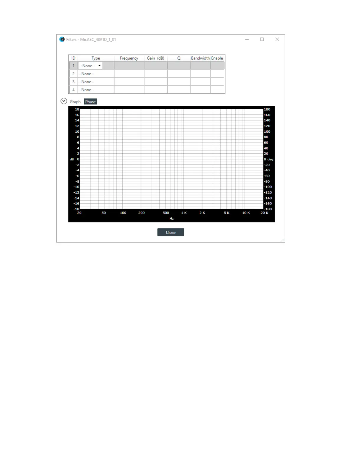 Frequency The center frequency for the filter you are configuring. Range is from
