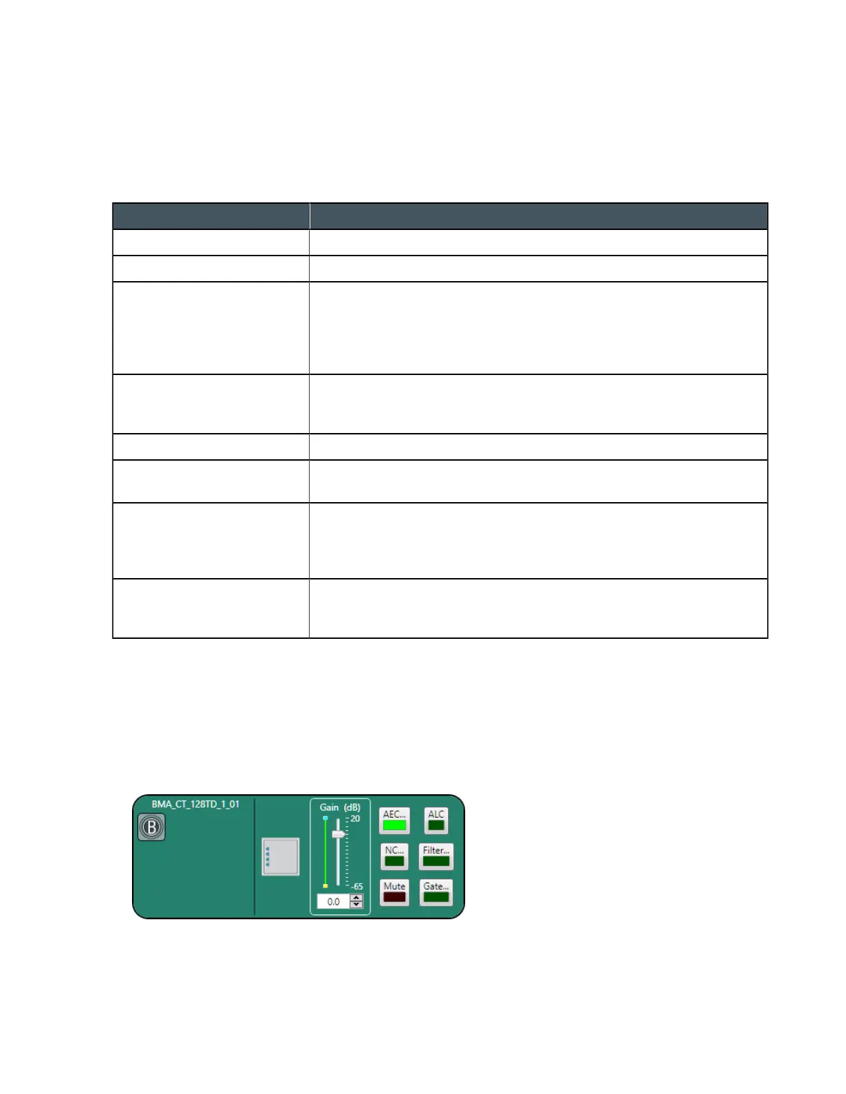 Gain Gain adjusts the input volume level for a BMA CT input.