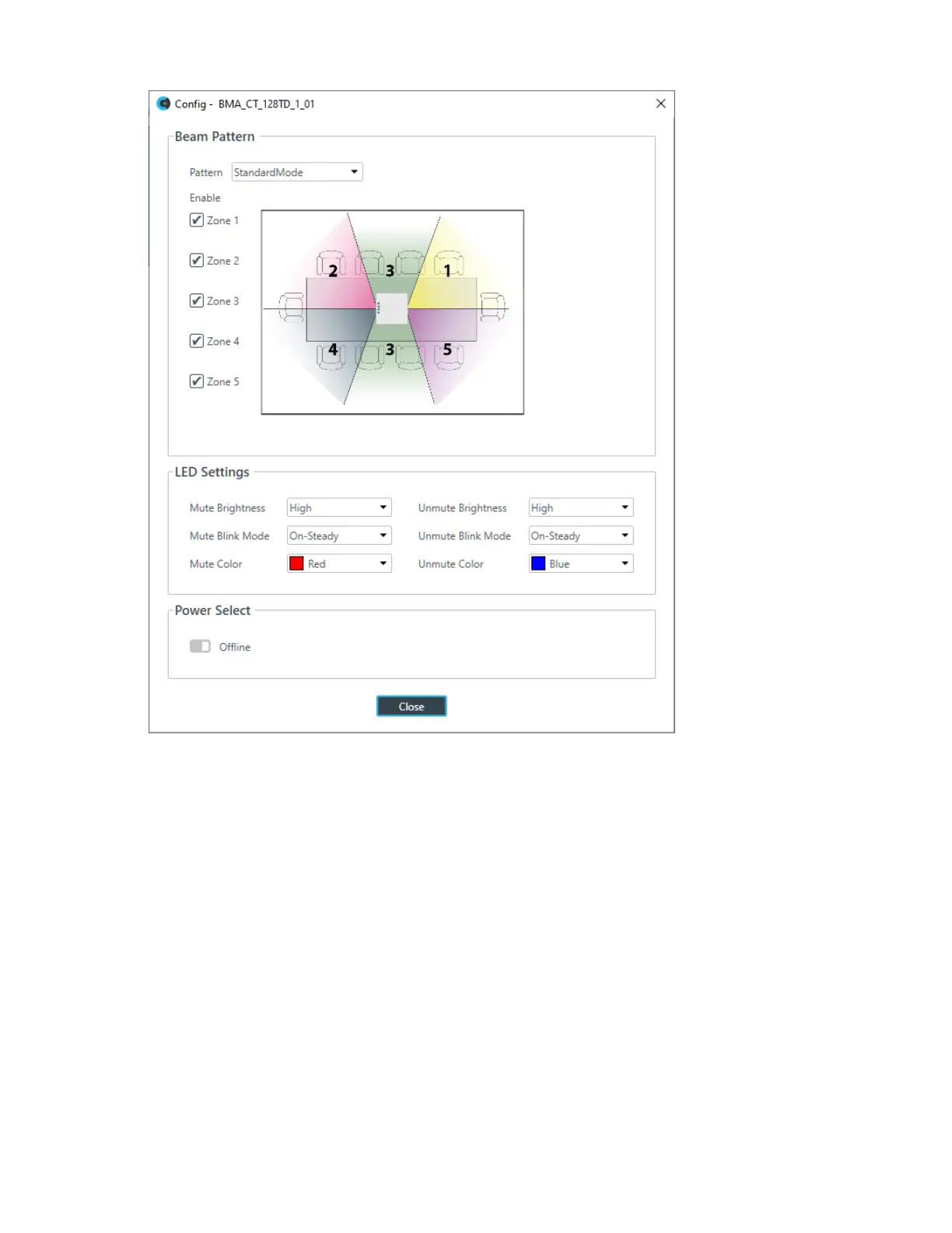 Zones Choose which microphone zones are turned on.