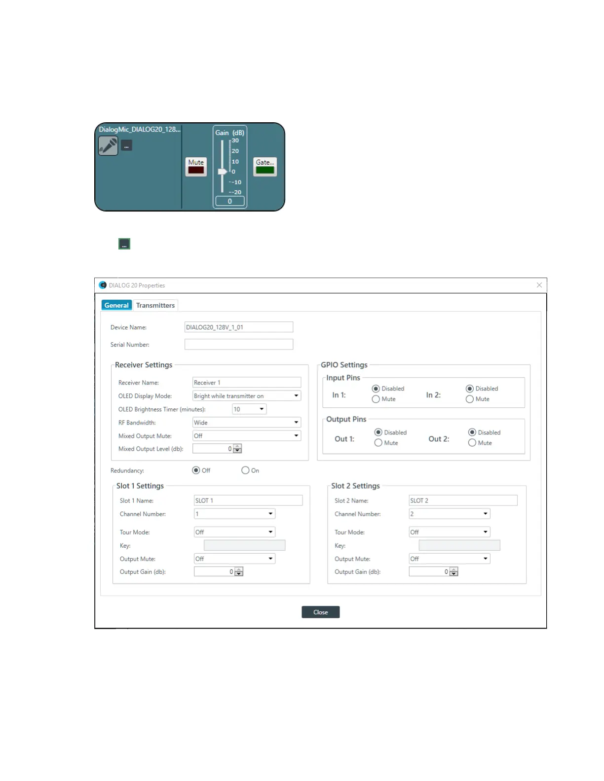 Serial Number The serial number of the DIALOG 20 device. If the device is